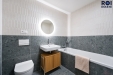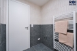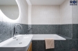 Koupelna jako malé spa - Koupelna překvapí svou velikostí i zpracováním ? velkoformátové šedé obklady v kombinaci s krémovou barvou, zabudované LED zrcadlo, vana i pračka.