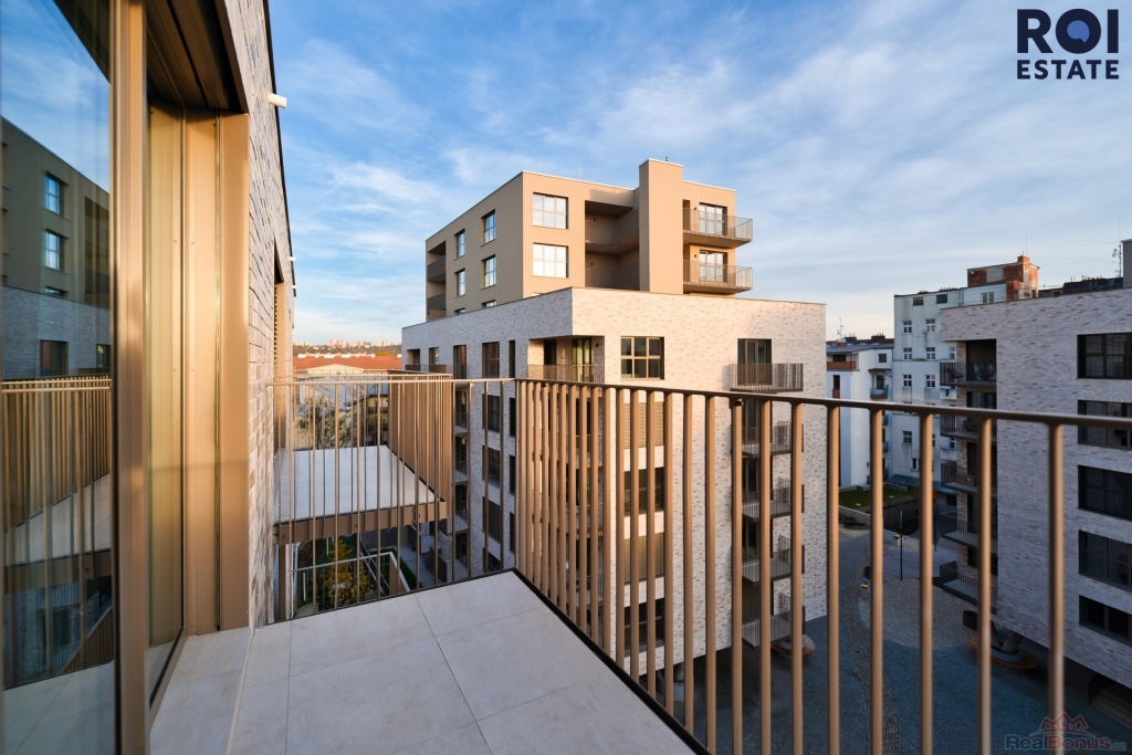 Balkon jeprostorný s příjemným výhledem do vnitrobloku projektu. Ideální místo pro večerní relax.