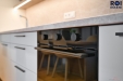 Kuchyně a jídelní část - Designová kuchyňská linka působí luxusně, ale zároveň prakticky. Krásné dřevěné horní skříňky, čisté linie, světla v teplém tónu a dostatek místa na vaření i stolování díky masivnímu jídelnímu stolu.