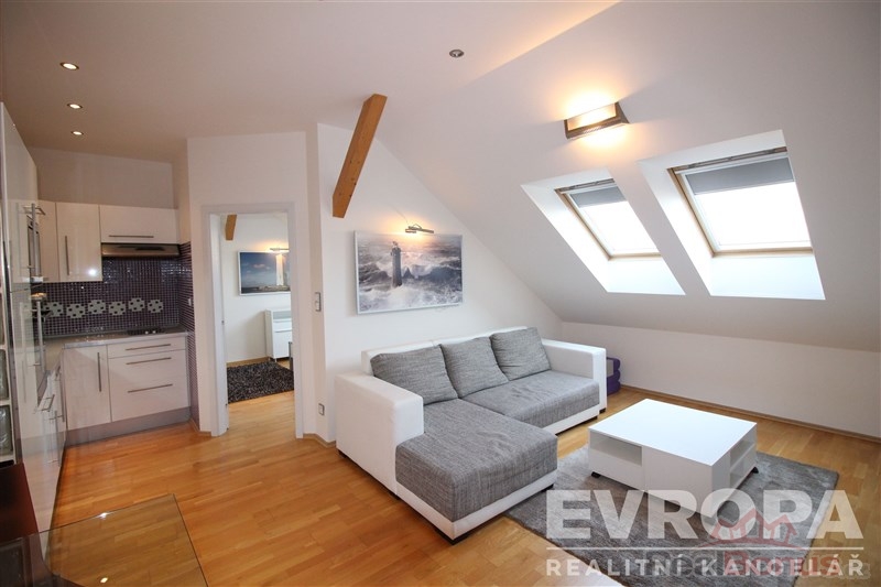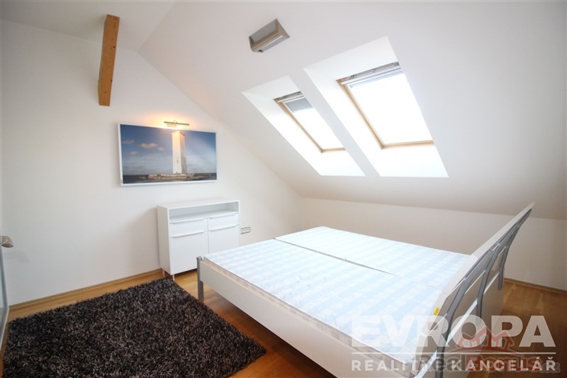 Nabízíme k pronájmu krásný byt, který se nachází ve čtvrtém patře bytového domu. Bytová jednotka byla nově kolaudována v roce 2008 a jedná se o podkrovní byt. Dispozice bytu je 2+kk, skládá se ze vstupní předsíně, prostorného obývacího pokoje, kompletně vybavená kuchyňská linka. Dále samostatná ložnice, doplněná o velkou praktickou šatnu. Velká koupelna s vanou, toaletou a pračkou. Byt je kompletně vybavený, včetně vkusného nábytku, který je na fotografiích.