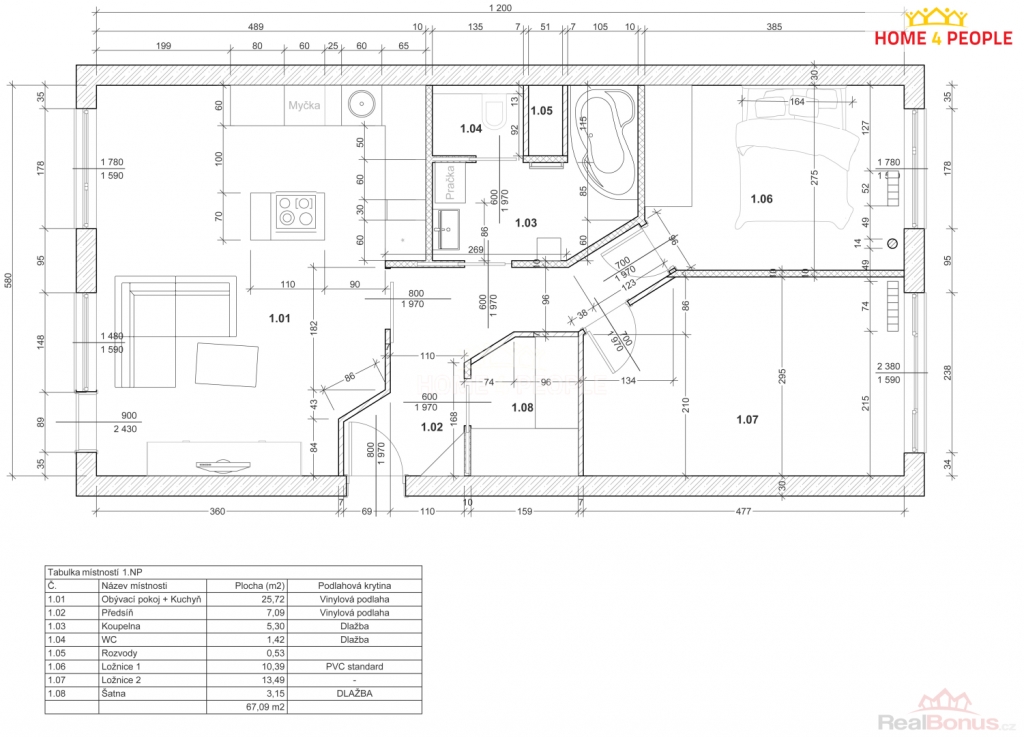 | Celková podlahová plocha | 67 m² |