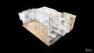Byt tvoří obývací pokoj s kuchyňským koutem, samostatná ložnice, koupelna s vanou a WC a vstupní chodba.