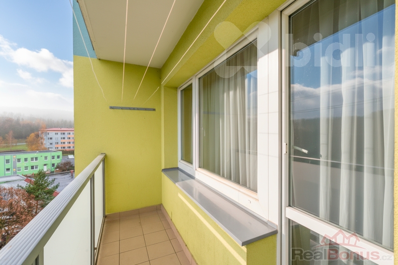 Byt má praktickou dispozici a dobré uspořádání místností, které je vhodné pro rodinu s dětmi. Nabízí prostornou chodbu, obývací pokoj s lodžií orientovanou na východ do zeleně a další dva samostatné pokoje.