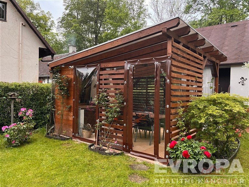 Na pozemku dále kůlna/dílna a samostatný pokoj pro hosty s elektřinou
