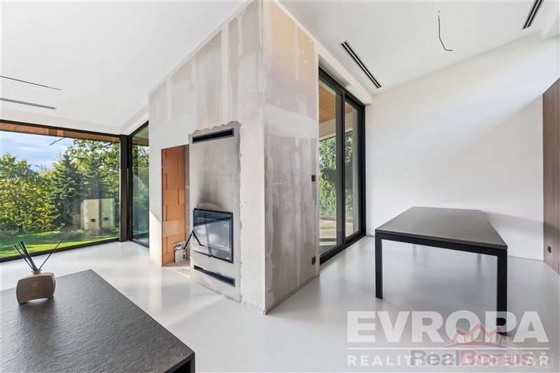 Nadčasový design, bezpečnostní prvky, velkoformátová skla, hliníkové rámy, dodávají interiéru noblesu a vpouští do domu spoustu denního světla.