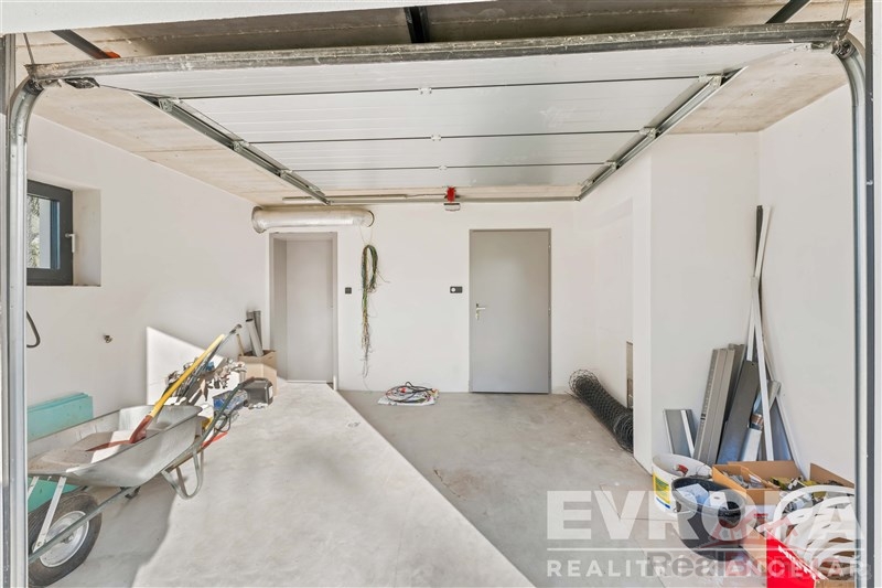 K domu vede zpevněná přístupová cesta (příprava na vyhřívanou cestu) navazující na obecní komunikaci. Náleží k němu garáž s dílnou, 2 prostorné technické místnosti, krytá terasa a kryté stání.