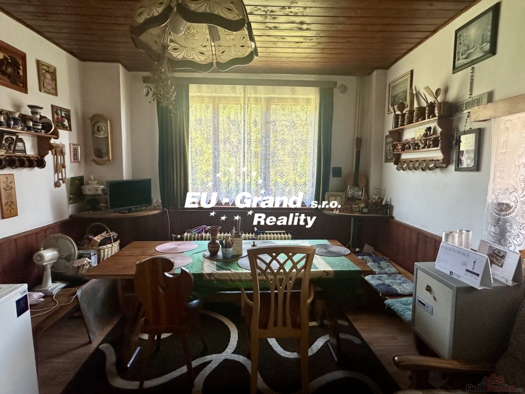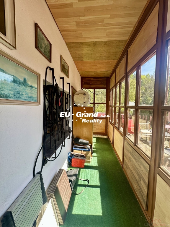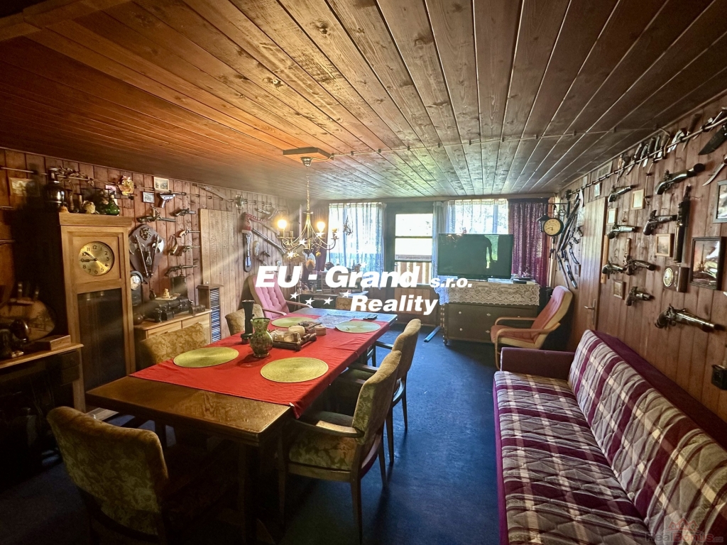 Dispozice: Přízemí: prostorná veranda, vstupní chodba, kuchyň s jídelnou, ložnice, koupelna, samostatné WC a kotelna. 1. nadzemní podlaží: rozlehlá společenská místnost s krbovými kamny, čtyři podkrovní pokoje a dva úložné prostory. Technické zázemí: napojení na obecní vodovod, elektřina, odpad sveden do jímky, ohřev vody bojlerem, centrální vytápění kotlem na tuhá paliva. Střešní krytina je z plechu.
