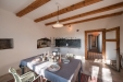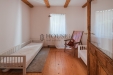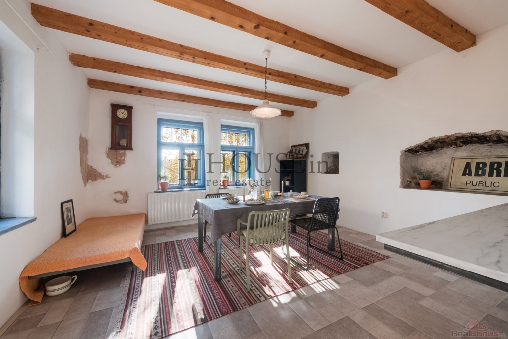 V horním patře se nacházejí dva velké světlé pokoje a chodba se schodištěm. Ve větším pokoji jsou přivedeny rozvody, které umožňují zřízení kuchyňské linky. Celkem tedy dům nabízí dispozici 4+kk s dostatkem úložného prostoru. Interiér působí velmi příjemně díky dřevěným podlahám, odhaleným trámům a velkým střešním oknům, které přinášejí do prostoru dostatek světla a vytvářejí jedinečný charakter domu.