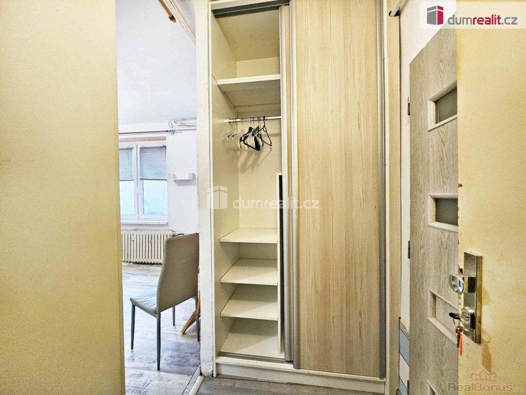 , Dumrealit.cz Vám zprostředkuje pronájem bytu 1+kk o výměře 24,36 m, v ul. Kostelní v Lovosicích. Nachází se v přízemí bytového domu. Je zde jeden pokoj, kuchyňský kout, malá vstupní chodbička s vestavěnou skříní a koupelna se sprchovým koutem, toaletou a pračkou. V kuchyni je linka s plynovými kamny a digestoří. V pokoji je manželská postel, skříň, stolek a 2 židle. Byt má plastová okna s bezpečnostním sklem. Topení je zde ústřední dálkové s měřiči, teplá a studená voda z řádu. Možnost připojení kabelové TV. Dům je po kompletní rekonstrukci, má novou střechu, plastové vstupní dveře a je zateplen. Byt je orientován do klidného vnitrobloku. Parkování je možné před i za domem. Nájem 10.000,- Kč včetně záloh za topeni, teplou a studenou vodu. Plus zálohy na elektřinu a plyn, které budou na nájemce. Kauce 20.000,- Kč. Byt je volný, ihned k nastěhování. V případě zájmu o prohlídku volejte makléřku nemovitosti. Ev. číslo: 653098. Energetický štítek: G