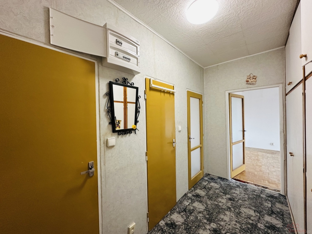 WC i koupelna prošla zdařilou rekonstrukcí, zděné jádro. Kuchyně je starší, ale plně funkční. Na předsíni je původní vestavná prostorná šatní skříň. Podlahy v pokojích jsou původní kazetové dřevěné parkety, v kuchyni je položen vinil, v koupelně a WC nová dlažba. Okna jsou v plastu, radiátory mají samostatné měřiče. K bytu náleží také sklep.