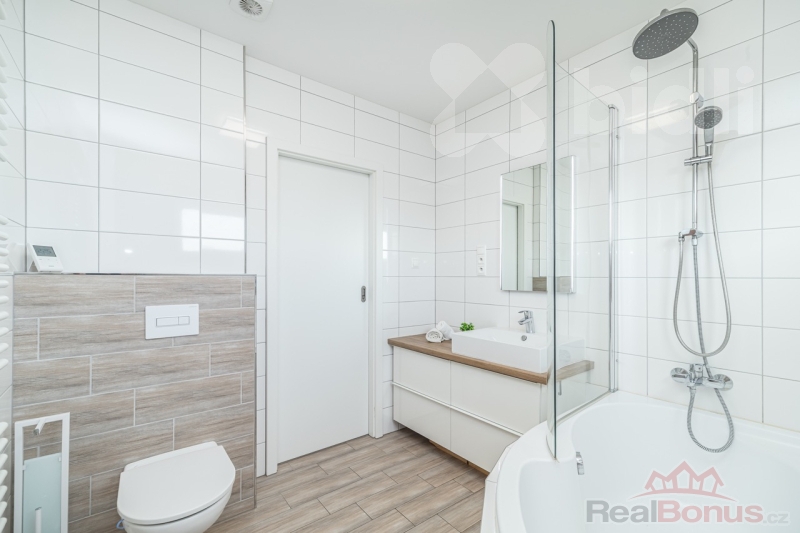Ve 2. nadzemním podlaží jsou dvě samostatné ložnice a koupelna s vanou a toaletou.