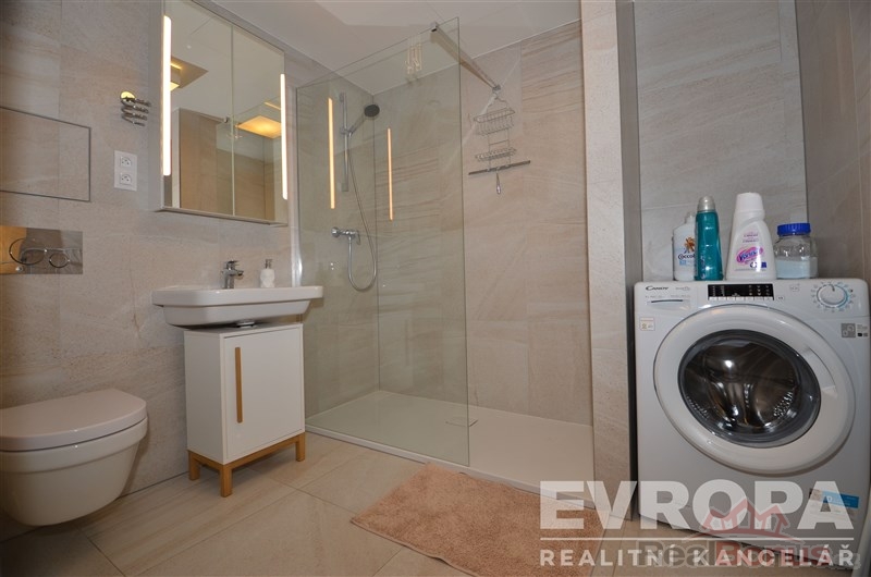Pokud hledáte bydlení nedaleko centra Prahy, tak právě Vám nabízíme moderní a světlý byt dispozice 2+kk, plocha 53m2, s balkonem 3,5m2 a vlastním garážovým stáním v suterénu domu. Byt se nachází ve 4 podlaží novostavby, Rezidenční projekt Smíchov City, od společnosti Sekyra Group. Skládá se ze vstupní předsíně (chodby), která propojuje všechny místnosti v bytě, hlavní a největší místností je obývací pokoj s kuchyňským koutem (23,8m2), dále samostatná ložnice (14,3m2), koupelna s vanou, wc a pračkou. Z obývacího pokoje je výstup na příjemný balkon s orientací na západní stranu do klidného vnitrobloku domu. Velkoformátová okna jsou vybavená venkovními automatickými roletami. Kuchyňská linka je vybavena sklokeramickou indukční varnou deskou, troubou, myčkou a lednicí s mrazákem. Vytápění bytu je řešeno ústředním vytápěním, s automatickou regulací a v bytě je rovněž rekuperace. Byt se nachází ve vyhledávané lokalitě, která nabízí absolutní dostupnost mhd, metro, tramvaje, autobusy, vlaky jsou v přímém sousedství, dále nadstandardní občanskou vybavenost včetně restaurací a kaváren přímo v rezidenci. O bezpečí rezidentů se vedle přístupového a kamerového systému stará také centrální recepce, stejně jako o agendu spojenou se stále více potřebným přebíráním zásilek. Cely blok rezidence působí jako tradiční činžovní domy, můžete si tedy zvolit, jestli vstoupíte přímo do svého domu, nebo projdete přes centrální recepci bytové části situované z ulice Šiklova a dále přes zahradu. Vedle recepce je situován i kontrolovaný vjezd do společných podzemních garáží. Majitel preferuje nájemce bez domácích zvířat a ideálně max. dvě pracující osoby (pár). Byt se nabízí k pronájmu kompletně zařízený viz. fotografie a je k nastěhování volný ihned.