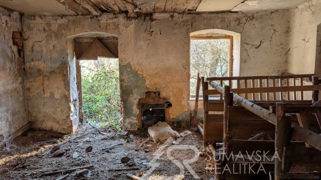 Popis: jedná se o bývalou kovárnu ležící přímo u komunikace v obci Tuškov u Kašperských Hor. Na pozemku o velikosti 197 m2 stojí podsklepený dům o půdorysných rozměrech 6,8 x 18 m. Zastavěná plocha stavbou je 113 m2. Dům sice není v dobré kondici, ale stavebními úpravami lze z něho vytvořit něco smysluplného. Výhodou je celé podsklepení ze stabilního kamenného zdiva se zastropením do kleneb.