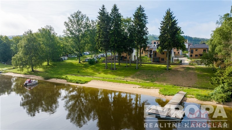 Nabízíme k prodeji dům (84,3 m2) s pozemkem (254 m2) v luxusním Lakeside Resortu Slapy. Tento exklusivní resort na Nové Živohošti je uzavřená privátní zóna s vyhřívaným bazénem a dostatkem parkovacích stání včetně dobíjení elektromobilů. Od tohoto domu je to pouhých deset metrů k vyhřívanému bazénu a dalších 200 metrů přímo na pláž Slapské přehrady. Dům se v prvním patře skládá z předsíně, samostatného WC, technické místnosti, prostorného obývacího pokoje s kuchyňským koutem. V druhém patře jsou dvě ložnice a koupelna s wc.
