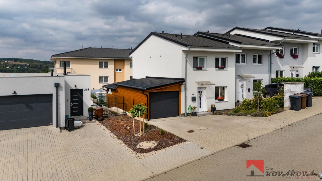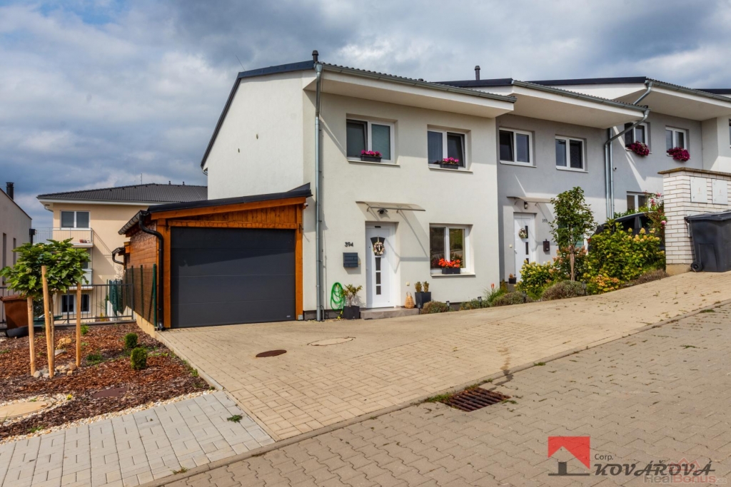 Nabízíme k prodeji moderní novostavbu z roku 2021 v klidné a neprůjezdné části Mikovic. Řadový patrový dům 5+kk s garáží, bazénem, zahradou, dvěma parkovacími místy a pergolou poskytuje ideální rodinné bydlení s nízkými provozními náklady (energetická třída B).