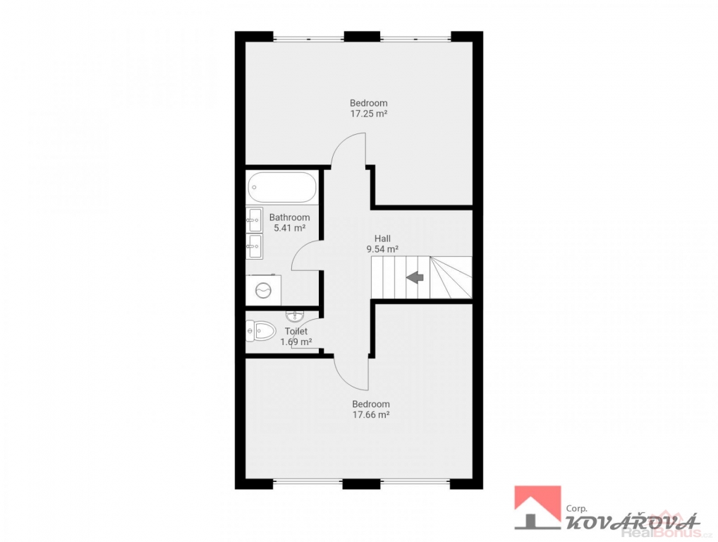 Patro: 3 pokoje, koupelna s vanou, samostatné WC, vstup na půdu
