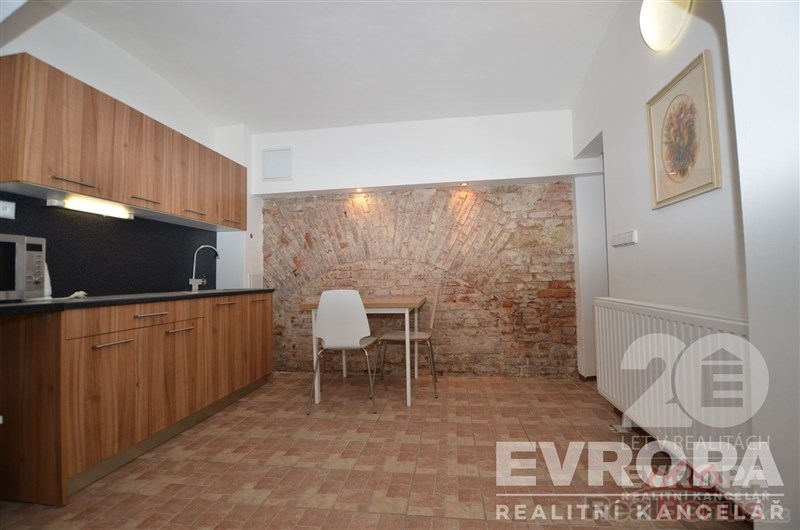Celý nebytový prostor je citlivě zrekonstruovaný se zachováním původních prvků kamenného a cihlového zdiva. Skládá se ze vstupní prostorné chodby, s místem na psací stůl, skříně atd., dále velká místnost s kuchyňským koutem, průchod do chodbičky, kde je koupelna se sprchou a samostatné wc a dále menší místnost, která má snížený podhled (výška stropu cca 165cm, tato místnost není zahrnutá v uvedené ploše) Na podlahách je praktická dlažba.