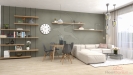 Povrchy koupelen a toalet tvoří keramické obklady a dlažby La Ceramica ICON v odstínech black a silver, v chodbách je použita dlažba La Ceramica Factory grey 60×60 cm. Stěny jsou malovány bílou barvou. Interiérové dveře SOLODOR jsou bílé s dřevěnými obložkovými zárubněmi, vstupní dveře jsou bezpečnostní v bílé barvě a okna jsou dřevěná s trojsklem typu EURO. Vytápění celého domu a ohřev vody zajistí úsporná plynová kotelna pro všech 16 bytů.