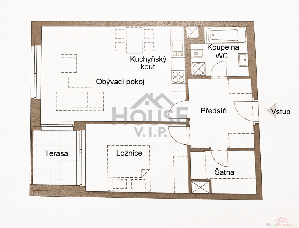 | Dispozice bytu | 2+kk |