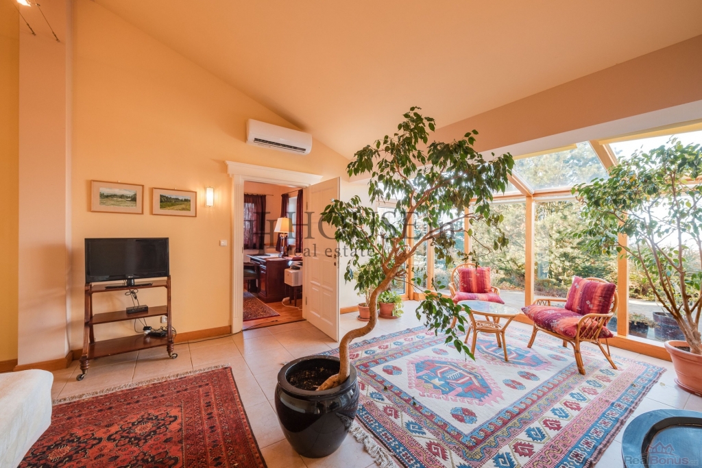 ? Vytápění: kotel na lehký topný olej + klimatizace využívaná v přechodném období, 2x krb v obývacím pokoji v 1. a ve 2. NP v ložnici (mramorový obklad vytváří reprezentativní prvek interiéru)