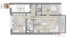 Dominantou bytu je obývací pokoj s kuchyňským koutem o rozloze 34,4 m2 s přímým vstupem na balkon (6,7 m2), odkud vás okouzlí nerušený výhled na okolní louky a lesy. Byt je navržen tak, aby poskytoval maximální ergonomii a prostor ? nechybí ani samostatná zděná spíž v kuchyni a prostorná šatna u vstupu.