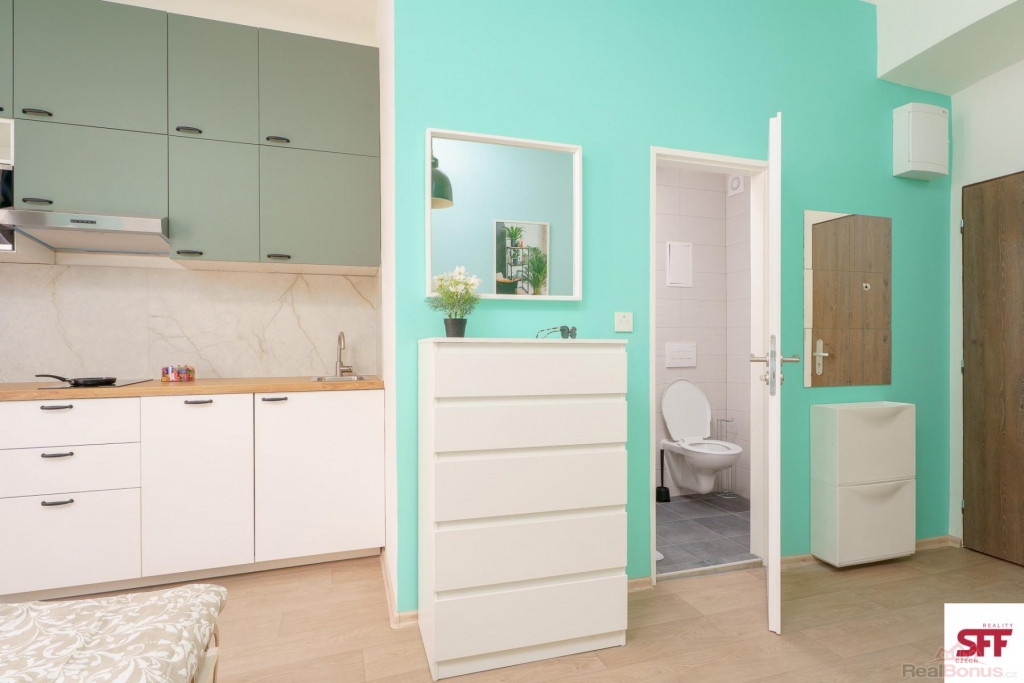 Studio o velikosti přibližně 24 m nabízí vše potřebné pro pohodlné bydlení: