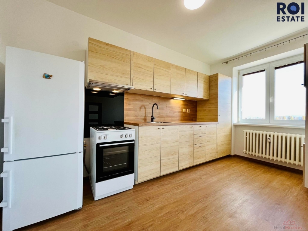 Byt nás přivítá prostornou chodbou, do které můžete dle Vaší fantazie dát skříně, kam padnou jako ulité. Odsud se dostaneme do kuchyně s obývacím pokojem, který díky spojení s kuchyní vytváří opravdu velký obytný prostor. Kuchyňská linka je Vám plně k dispozici včetně spotřebičů jako je plynový sporák a lednice. Pracovní plocha a úložný prostor je samozřejmostí. Díky umístění nemovitosti je v celém bytě velmi příjemně. Z obývacího prostoru se také dostaneme do dvou neprůchozích pokojů, jejichž orientace zajišťuje v celé bytové jednotce klid. Celý byt se nabízí jako nevybavený, tudíž si veškeré věci můžete zařídit dle Vaší chuti a představ. Naší poslední zastávkou z chodby je koupelna spojená s toaletou, kde na Vás čeká pračka, která se postará o Vaše oblečení. Celý byt působí velmi vzdušně a světle.