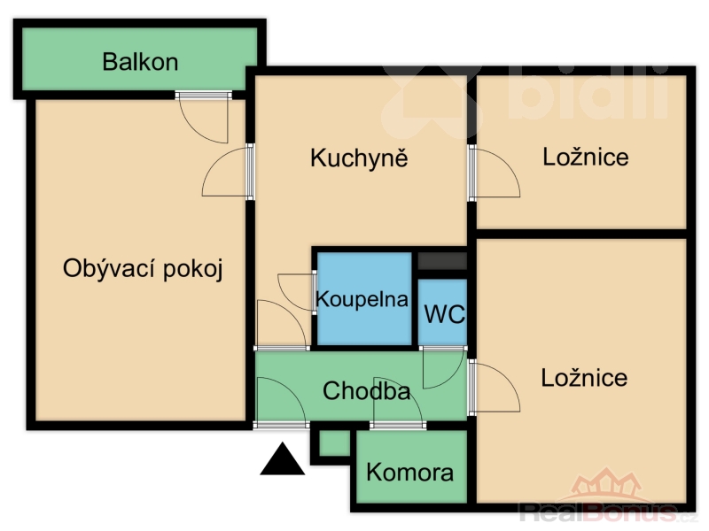 Dispozice bytu zahrnuje prostorný obývací pokoj se vstupem na balkon, kuchyň a dvě ložnice. Koupelna a WC jsou oddělené, na chodbě se nachází také praktická komora. Rodiny s dětmi jistě ocení dobře řešenou návaznost jednotlivých místností. Byt je určen ke kompletní rekonstrukci, což umožňuje novým majitelům přizpůsobit si ho vlastním představám. Vytápění je řešeno ústředně pomocí elektrického kotle umístěného v bytě.