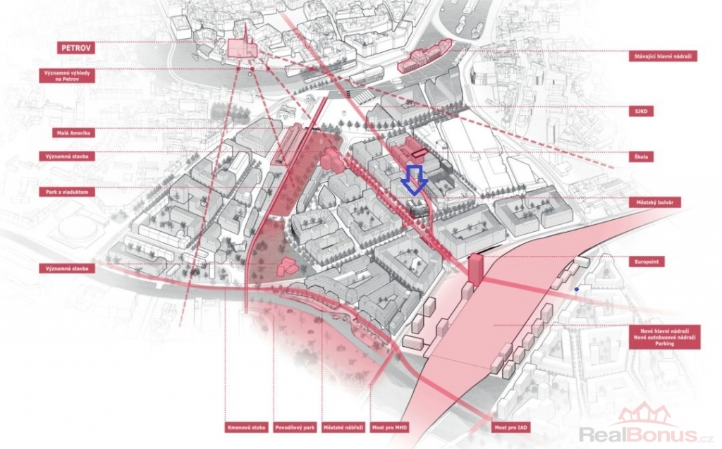 Pronájem nových obchodních prostor s výlohami o výměře 134,03 m2, v přízemí právě dokončeného objektu v sousedství galerie Vaňkovka. Prostory jsou finálně nedokončeny, a proto jsou vysoce variabilně využitelné. Díky prostředí a prestižní adrese jsou velmi atraktivní. Budova je PENB B, tedy velmi úsporná. Vytápění tepelnými čerpadly zaručuje příznivé náklady. Lokalita je exkluzivní svou dostupností do centra města, dosahem MHD a výjezdu z města na D1 i D2. Budoucí bulvár, na který již bylo vydáno platné územní rozhodnutí, jehož je součástí předmětná budova a do kterého jsou tyto prostory orientovány, bude hlavní spojnicí nového nádraží s centrem města. Padesát metrů široký bulvár bude lemován domy s obchody a službami v přízemí, bude mít široké chodníky se stromořadími a jeho nedílnou součástí bude tramvajová, motorová a cyklo doprava. Prostory jsou k dispozici po dohodě a díky nedokončenému stavu jsou vysoce variabilní. Je zde i dostupnost vzduchotechniky a chlazení v kapacitě požadované pro gastro provoz.