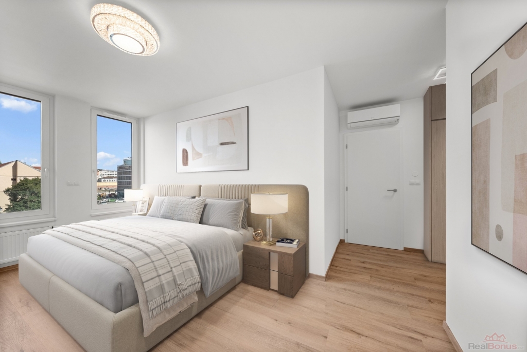 Nabízíme prodej pěkného prostorného bytu o dispozici 4+kk, o celkové ploše 127,3 m2 (včetně balkonu a sklepa), v novém developerském projektu, který najdete v těsném sousedství historického centra města Brna, u nákupního centra Galerie Vaňkovka a ÚAN Brno - Zvonařka. Světlý byt se nachází v 4. NP bytového domu. Součástí je balkon a sklep v 1.PP. Možnost dokoupení až dvou garážových stání v domě v ceně 950.000 Kč/kus.