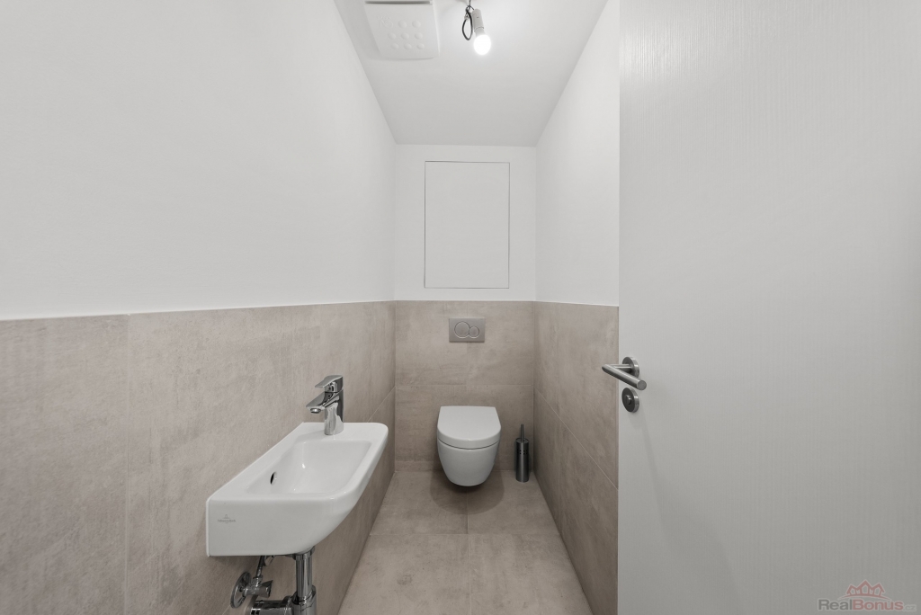 Klimatizace 4x, příprava na screenové a venkovní rolety, koupelna s WC (vana, sprchový kout, umyvadlo, WC, připojení na pračku a sušičku).