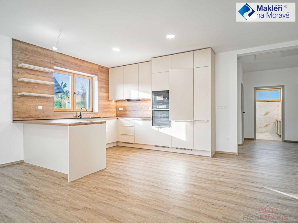 Vybavení kuchyně je v nadstandardním provedení s komfortní prostornou rohovou kuch. linkou a s ostrůvkem se spoustou úložného prostoru. Spotřebiče zn. Gorenje jsou rovněž zárukou kvality.
