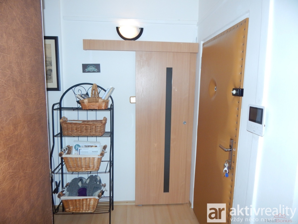 Bytová jednotka o celkové rozloze 64 m2, v posledním devátém patře, včetně sklepní koje a komory v mezipatře, působí příjemným, prostorným a zároveň útulným dojmem díky praktickému rozvržení pokojů, kuchyně s prostorem na jídelní set a samostatnou šatnou zajišťující dostatek úložného prostoru.