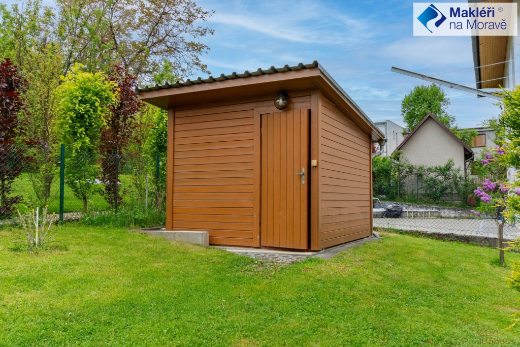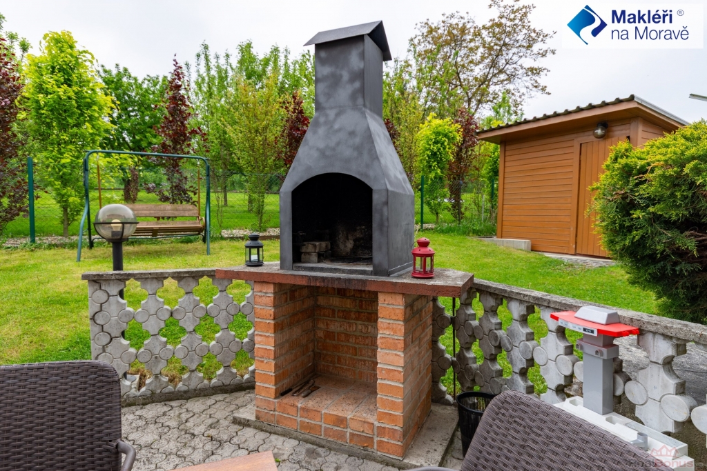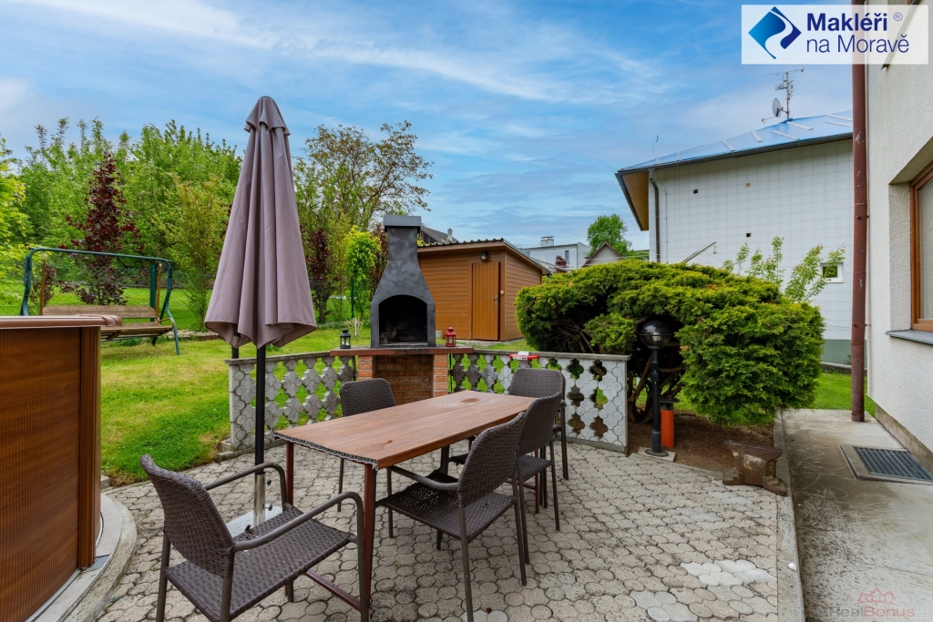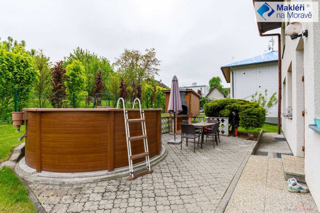 Na zahradě, která je pečlivě udržovaná, se nacházejí dvě funkční studny, což zajišťuje dostatek vody pro zahradnické aktivity, není vyloučeno, že by voda šla využívat i jako pitná. Součástí prodeje je bazén, zahradní gril a chatka s odpadem do veřejné kanalizace. Zahrada je ideálním místem pro odpočinek, ale také pro aktivní zkrášlování a pěstování rostlin. Před domem jsou k dispozici dvě parkovací místa a brána na dálkové ovládání, což přidává na pohodlí. Větší bezpečnost pak zajišťuje celooplocený pozemek.