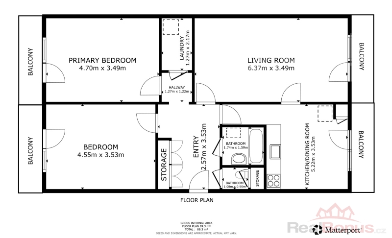 Hlavní devizou bytu jsou čtyři balkóny, které poskytují krásný výhled a dostatek prostoru k relaxaci. Byt má velkorysou předsíň vybavenou vestavnými skříněmi, samostatné WC a koupelnu s vanou v umakartovém jádře. Kuchyně i jednotlivé pokoje jsou dobře dispozičně řešeny a nabízí dostatek prostoru pro rodinné bydlení. Pokoje nejsou průchozí.
