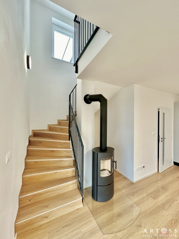 Součástí standardního vybavení dané jednotky je kuchyňská linka vč. varné desky, elektrické trouby, digestoře, myčky, dále jsou součástí vybavení krbová kamna. Předokenní žaluzie. Vytápění podlahové teplovodní. Zahrada bude oplocena.