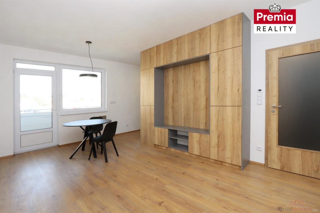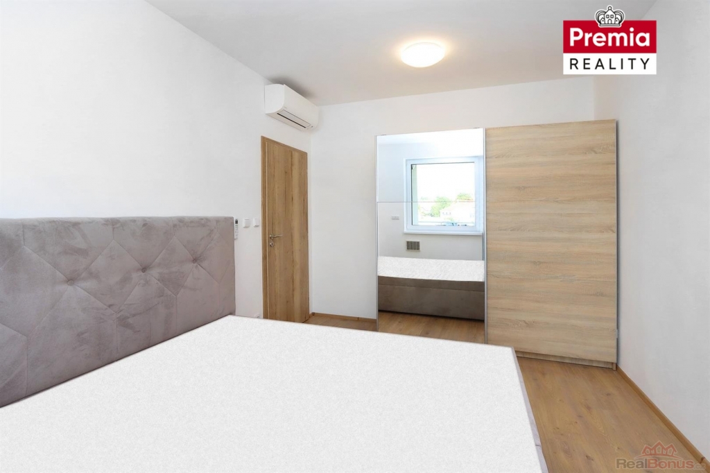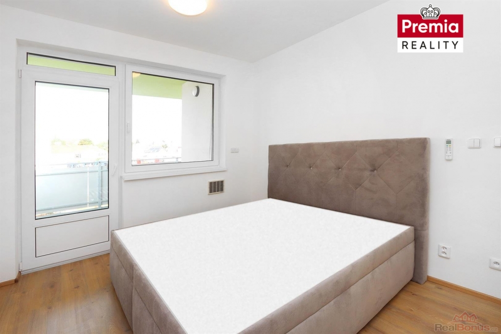 Nabízíme k pronájmu novostavbu bytu, z prémiového developerského projektu BYTY Vančurova ve Znojmě, který je situován do velmi atraktivní a klidné lokality města. K bytu náleží vyhrazené venkovní stání před domem za 1.500,- Kč/měsíčně. Prostorný byt o dispozici 2+kk je vybudován v novém cihlovém domě s výtahem, nacházející se ve 3. patře bytového domu. Byt je vybaven klimatizací v každém pokoji a venkovními elektrickými žaluziemi. K bytu náleží lodžie (15,3 m2) a sklepní koje. Skládá se ze vstupní chodby, koupelny, WC, ložnice a obývacího pokoje s kuchyňským koutem. Je zde nová kuchyňská linka se zabudovanými spotřebiči - varná deska, mikrovlnná a elektrická trouba, myčka, lednice s mrazákem, digestoř, jídelní stůl, židle, v ložnici pak postel.