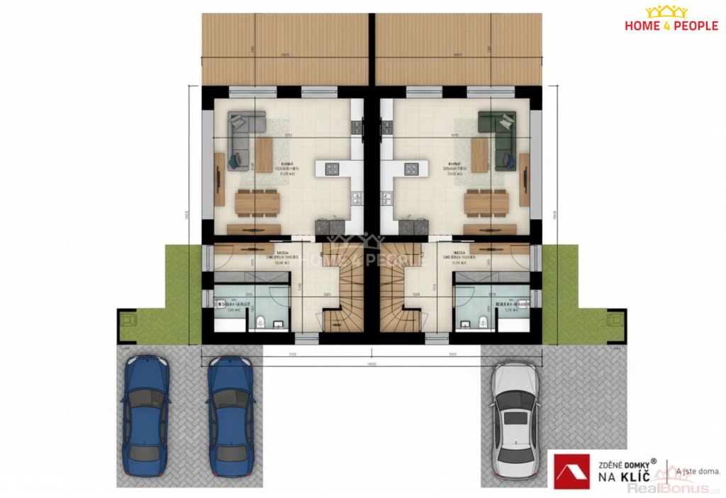 (Cena včetně pozemku, projektu, stavebního povolení, výstavby domu na klíč, kolaudace a parkování. DP)