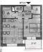 byt tvoří obývací pokoj s kuchyňským koutem (17,96 m2), ložnice (12 m2), vstupní chodba s prostorem pro úložné řešení, koupelna s vanou a samostatné WC. Součástí bytu je také šatna (2,16 m2), která poskytuje dostatek úložného prostoru.