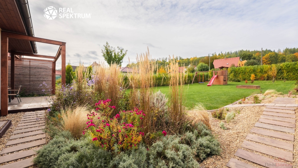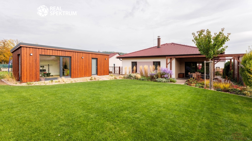 Na pozemku o rozloze 975 m2 vznikl rodinný a útulný svět ? dům decentního vzhledu, pečlivě upravený trávník, vzrostlá zeleň, trvalkové záhony, prostor pro hraní i terasa pro kávu na slunci. Děti tu mohou běhat, hrát si na písku, zatímco vy si užíváte odpočinek nebo pracujete venku. Nechybí ani samostatný zahradní objekt (29 m2) , ideální jako ateliér, posilovna, dětská herna či pokoj pro hosty.