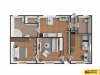 Dispozice domu zahrnuje tři pokoje ? jeden pokoj je průchozí a dva jsou neprůchozí, což zajišťuje dostatek soukromí. V kuchyni je dostatek prostoru pro jídelní stůl. Vedle kuchyně je praktická prostorná spíš pro uskladnění potravin i vybavení kuchyně. Koupelna je společná s WC a je vybavena rohovou vanou. Druhé samostatné WC se nachází v technické místnosti u vstupu na dvorek a zahradu a je doplněno malým umyvadlem. Dům je částečně podsklepený.