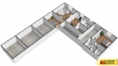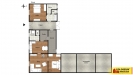Dům byl původně koncipován jako dvougenerační, jsou zde samostatné vchody do bytových jednotek z průjezdu domu. Bytové jednotky jsou dispozičně řešeny jako 2+1. Pro představu přikládáme přibližný půdorys domu.