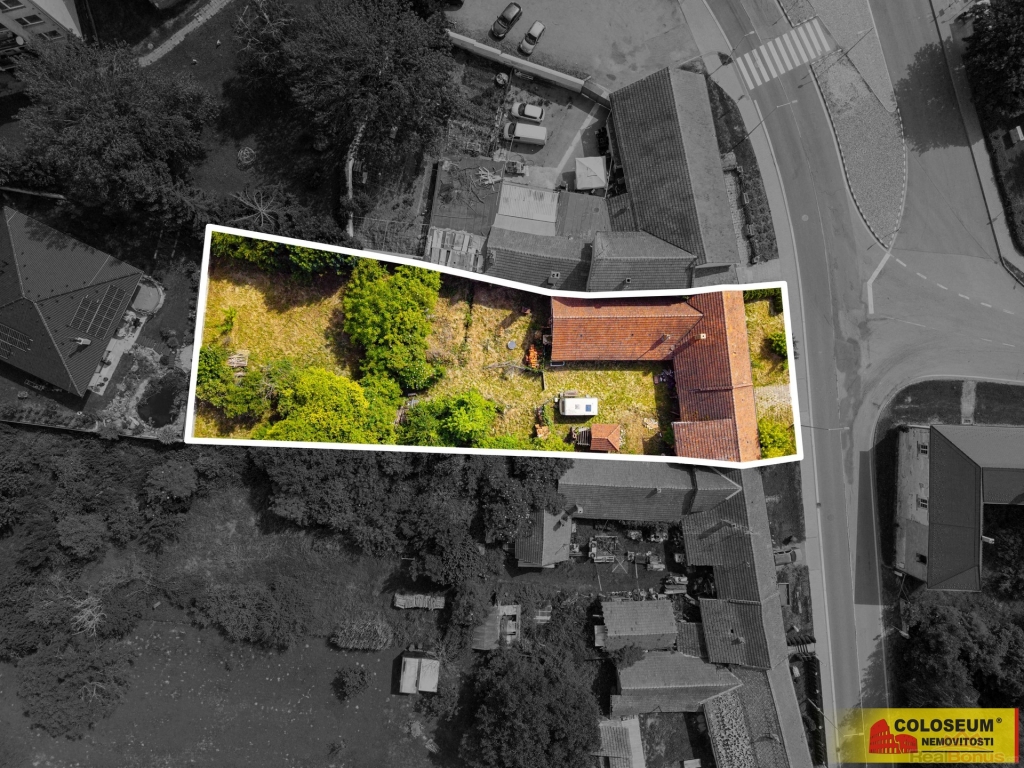Do domu je vchod i vjezd přes prostornou garáž/stodolu, která je průjezdná až do zahrady (což je ideální vzhledem k nutným stavebním úpravám domu). Zahrada za domem je kompletně oplocená.