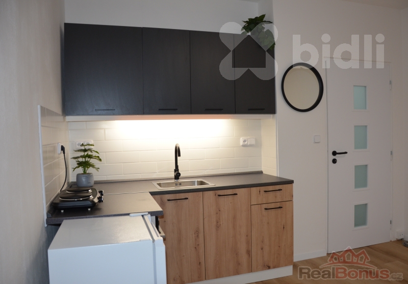 Nabízíme k pronájmu krásný, nově zrekonstruovaný byt 1+kk o užitné ploše 25 m2, který se nachází ve třetím nadzemním podlaží domu na ulici Budovatelů v Přerově. Jde o první pronájem po kompletní rekonstrukci, takže vše je zcela nové, čisté a dosud nepoužívané. Byt disponuje moderní kuchyňskou linkou vybavenou lednicí, sporákem a elektrickou troubou, v chodbě je k dispozici pračka a vkusná koupelna nabízí sprchový kout. Podlaha v pokoji je z kvalitního vinylu.