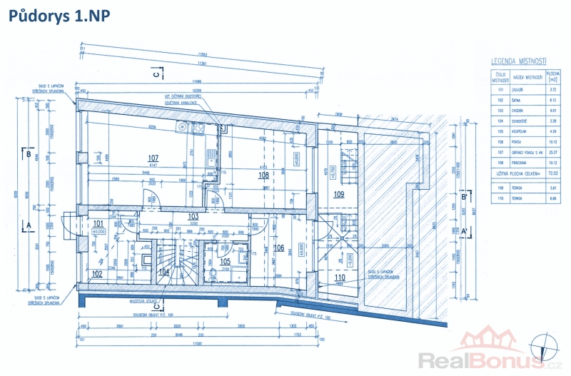 Užitná plocha celkem: 72.02 m2