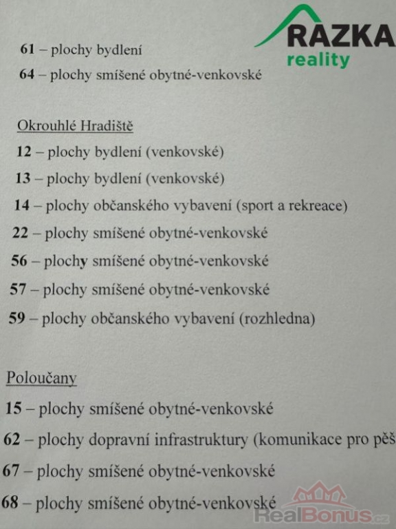Nabízíme k prodeji pozemek o výměře 1207 m2, který se nachází na krásném místě s úžasným výhledem do krajiny. Tento pozemek je na okraji malebné vesničky Okrouhlé Hradiště, která se nachází cca 3 km od Konstantinových Lázní. Dle územního plánu zde lze postavit rodinný dům venkovského typu. Sítě ( voda, kanalizace a elektrika) jsou ve vzdálenosti cca 80 m2. Na pozemku již proběhly terénní úpravy . Předmětem prodeje ( 50.000,- Kč ) je též odkup podílu 1/6 na přístupové cestě, která bude dle geometrického plánu splňovat veškeré normy přístupové cesty.