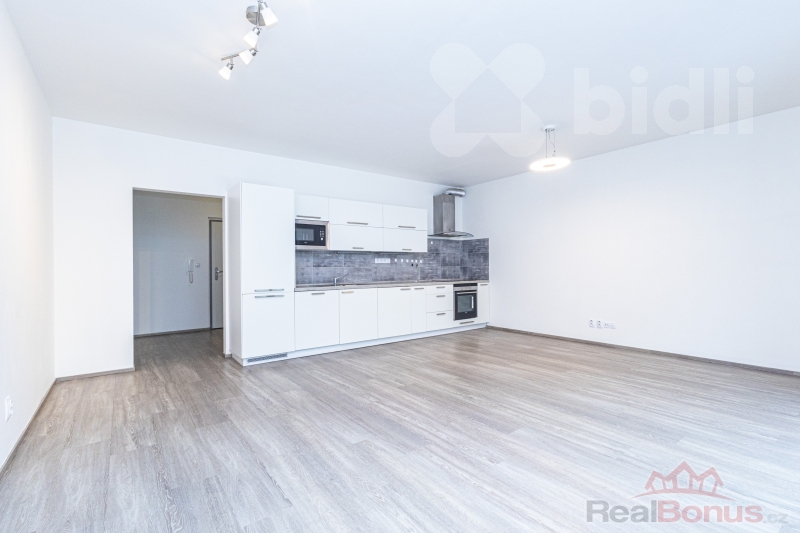Interiér bytu je zcela vyklizený, nově vymalovaný a připravený k okamžitému nastěhování. Tvoří ho světlý obývací pokoj s moderní kuchyňskou linkou a koupelna s vanou. Díky promyšlenému uspořádání působí prostor vzdušně a prosvětleně.