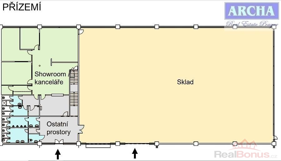 Zázemí pro sklad v přízemí, a samostatně i pro kanceláře v patře.