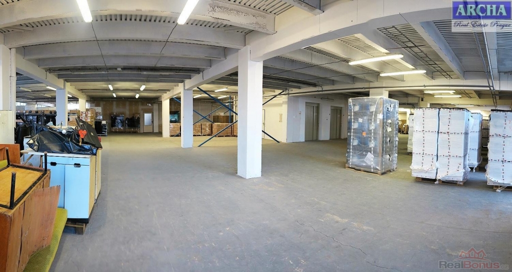 Příjem zboží do skladu pomocí nákl. vjezdových vrat o velikosti 4x4 m, která ústí na manipulačními plochu. U patra moderní nákladní výtahy.