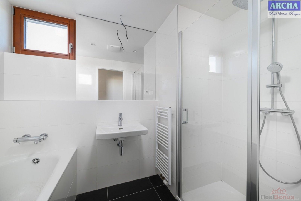 Provedení fit out zahrnuje hotovou koupelnu, podlahy, interiérové dveře a kompletní rozvody stačí jen doladit interiér podle vlastního vkusu.